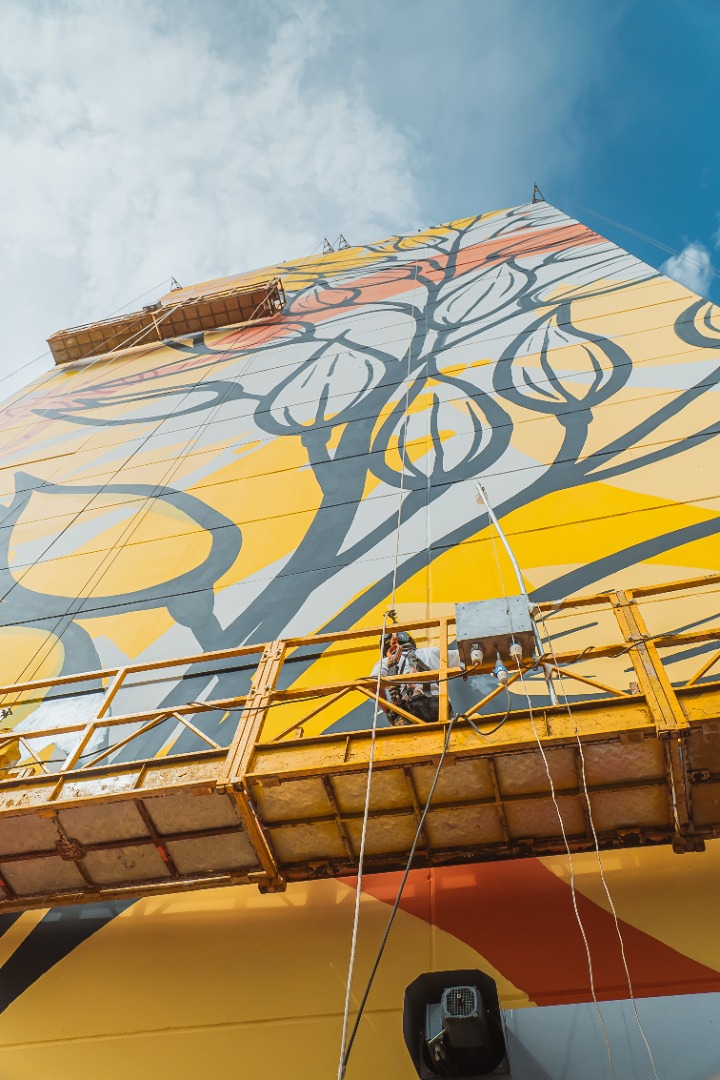 The mural was created by a team of six artists and work began on 16 March, involving the assembly of the structure, surface preparation and painting. For artist Thiago Vilela, the project carries a meaning that goes beyond urban intervention: